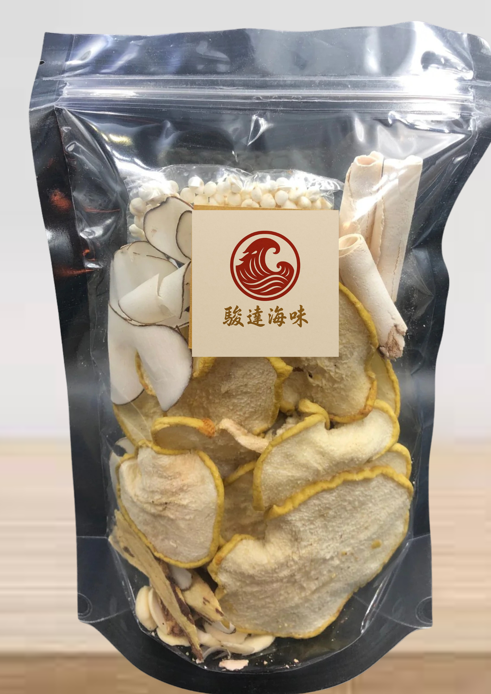雪梨乾、泰國椰片、雲苓、南杏、平貝、野生甘草 (所有成份會因季節及貨源而有所調整) |